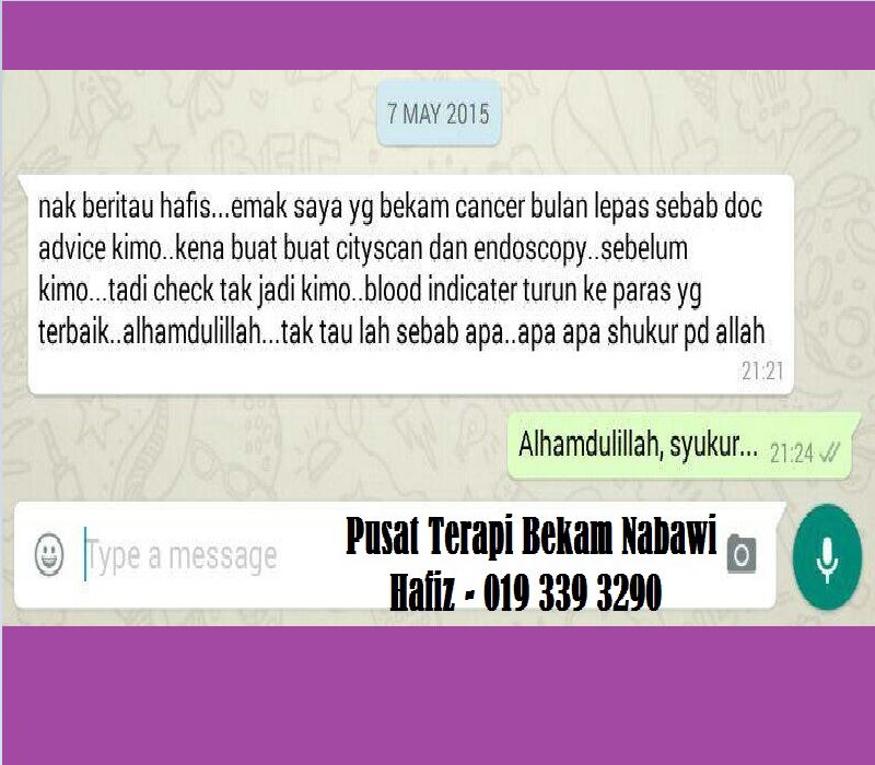 Nilainak beritau hafiz... emak saya yg bekam kanser bulan lepas sebab sebab doc advice kimo ... kena buat cityscan dan endoscopy... sebelum kimo... tadi check tak jadi kimi... blod indicator turun ke paras yang terbaik... alhamdulillah,,, tak tau lah sebab apa... apa shukur pd Allah